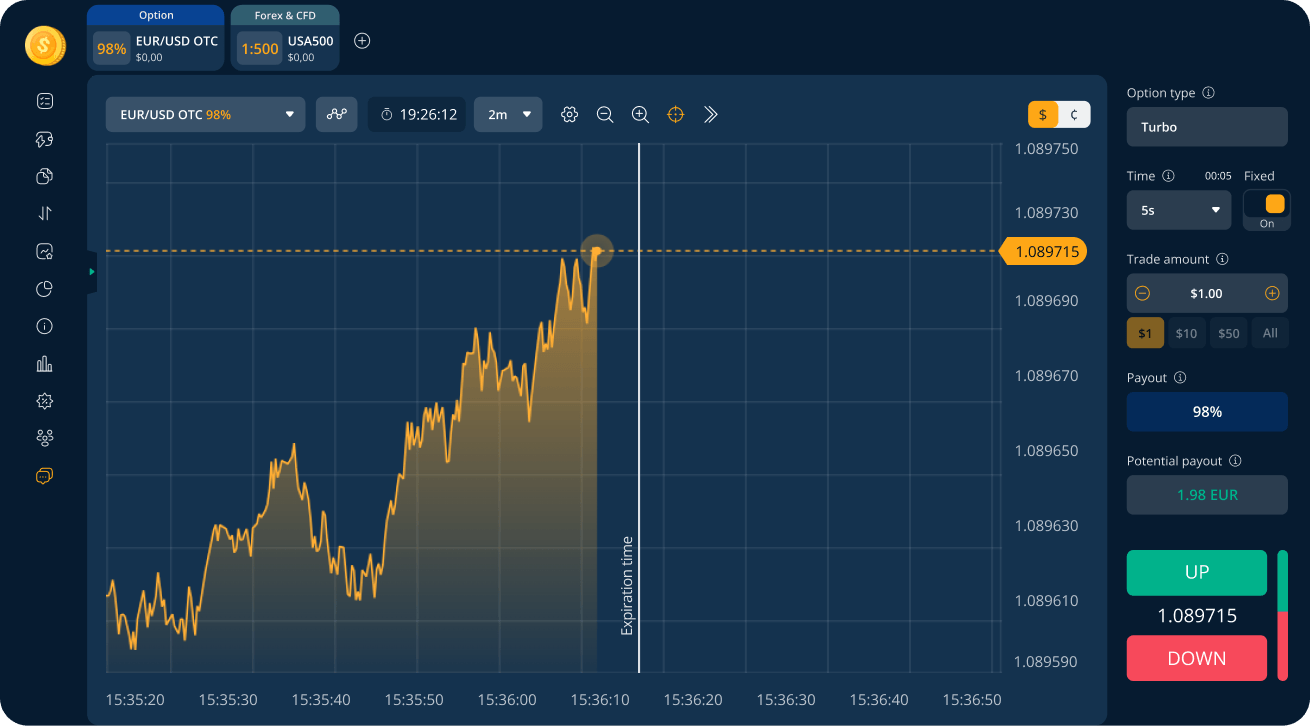 One of the primary trading options on Binarycent.ai is binary options. Binary options trading allows traders to predict whether an asset’s price will go up or down within a specified time frame. This form of trading is straightforward, making it appealing to beginners who want a simple way to get started in financial markets. With expiration times ranging from 60 seconds to several hours, traders have flexibility in how they approach their strategies.